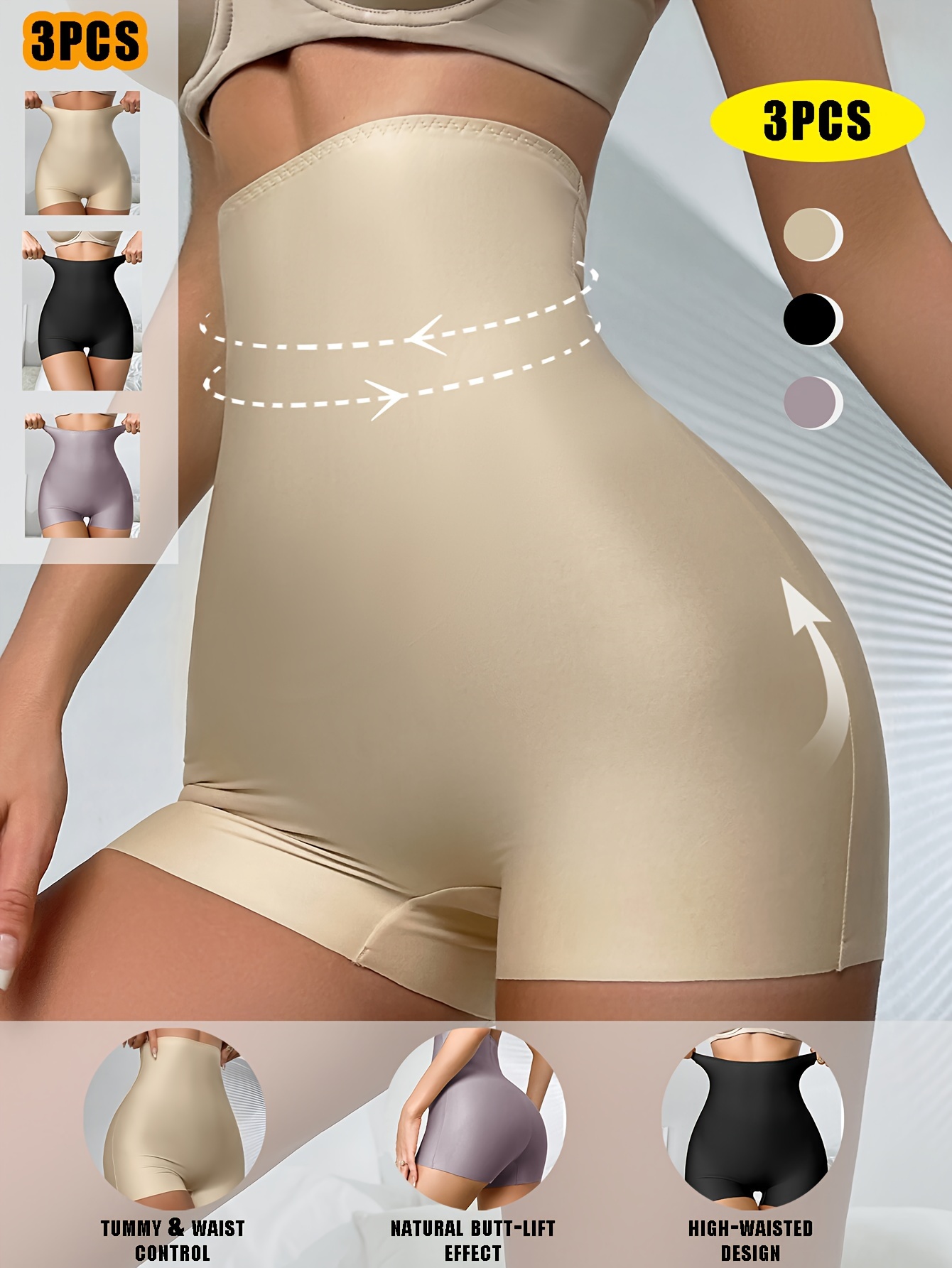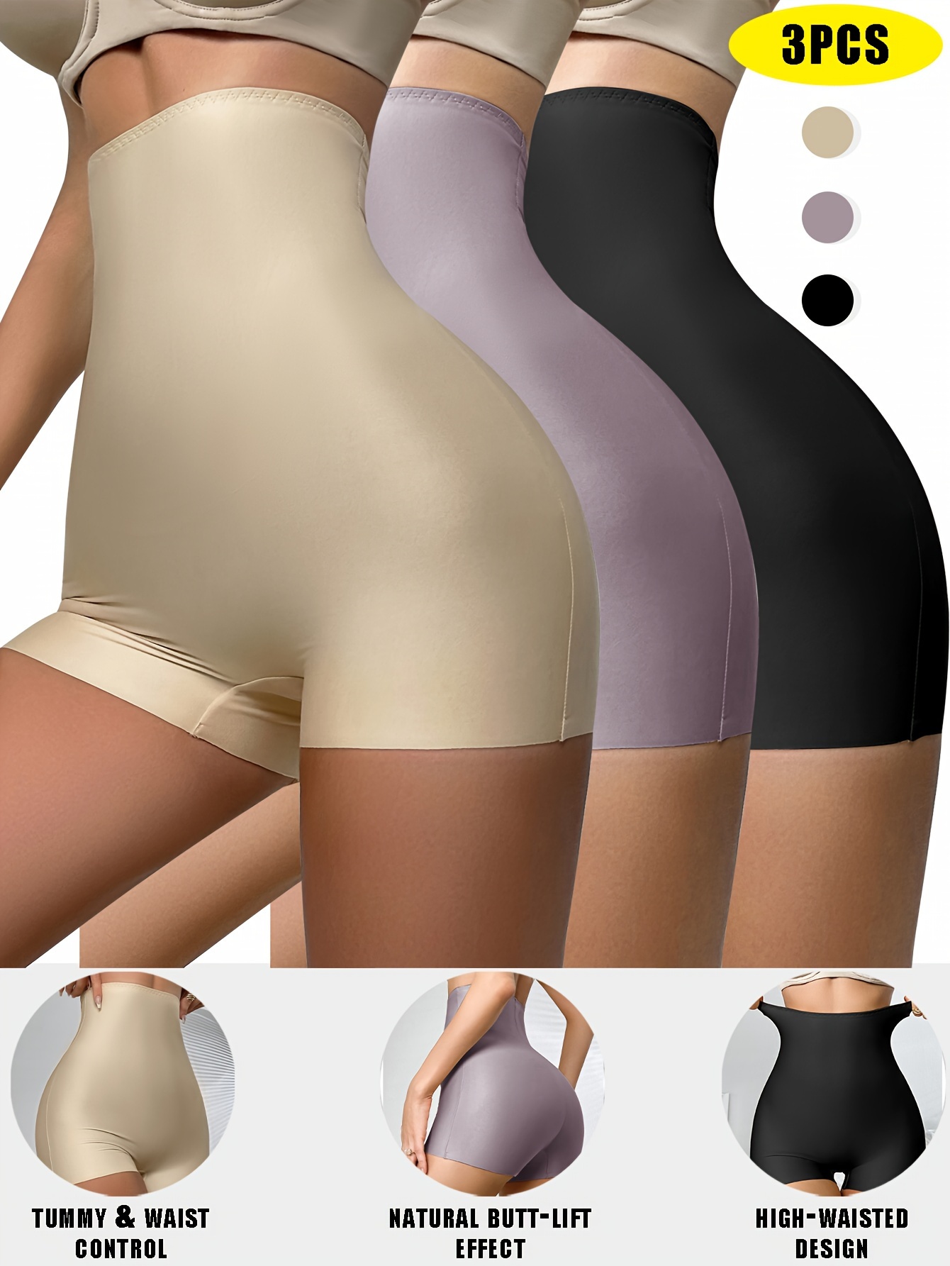 3pcs Femmes Taille Haute Contrôle Du Ventre Et Levage de Fesses Shapewear Shorts – Sans Couture, Antidérapant, Confortable Pour Le Yoga, Les Entraînements Et Les Tenues Décontractées – Beige, Violet, Noir Options, Shorts Taille Haute