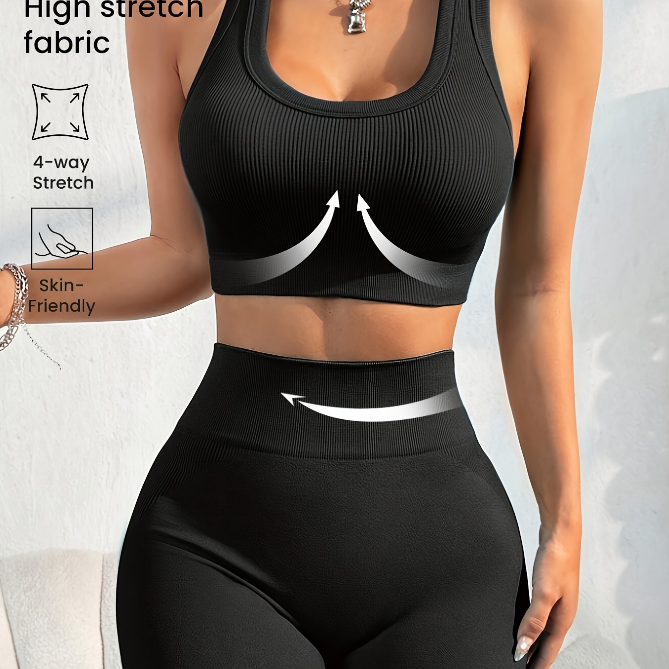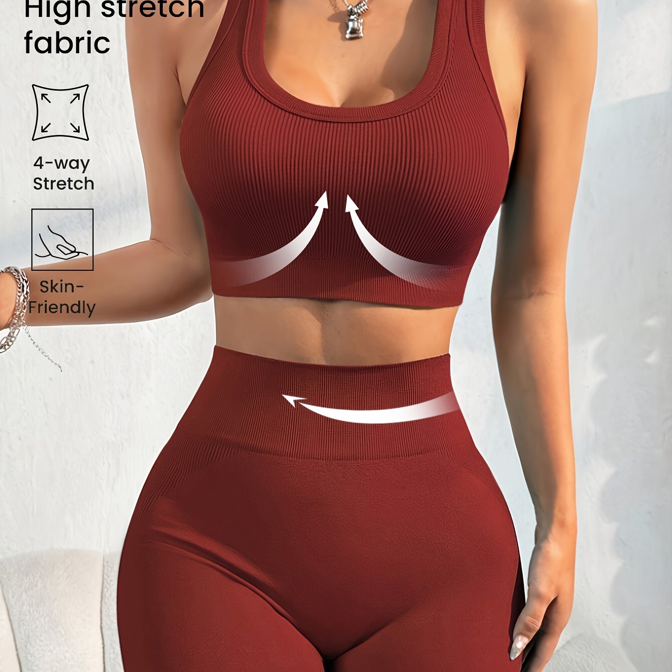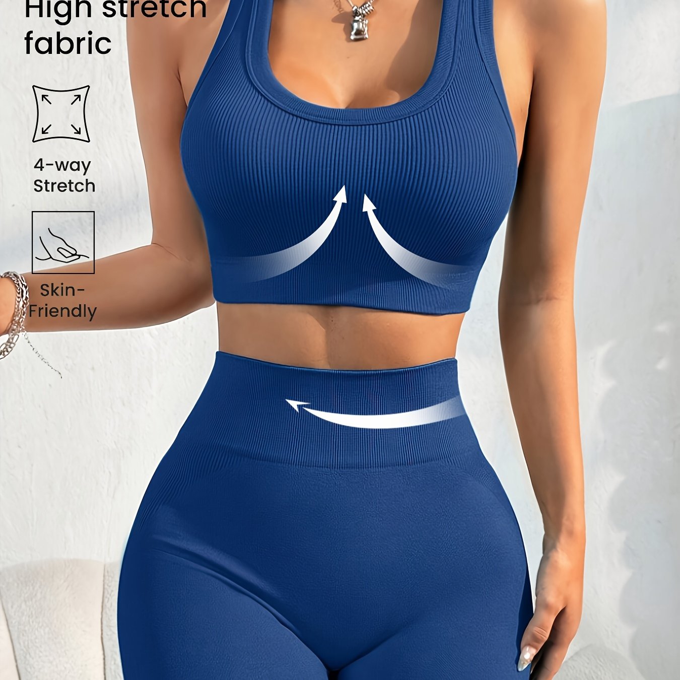 Ensemble de yoga sans couture pour femmes – Soutien-gorge de sport et short côtelés, extensible 4 directions, matière douce pour la peau, couleur unie, toutes saisons, détails côtelés, taille haute, tissu ultra-élastique