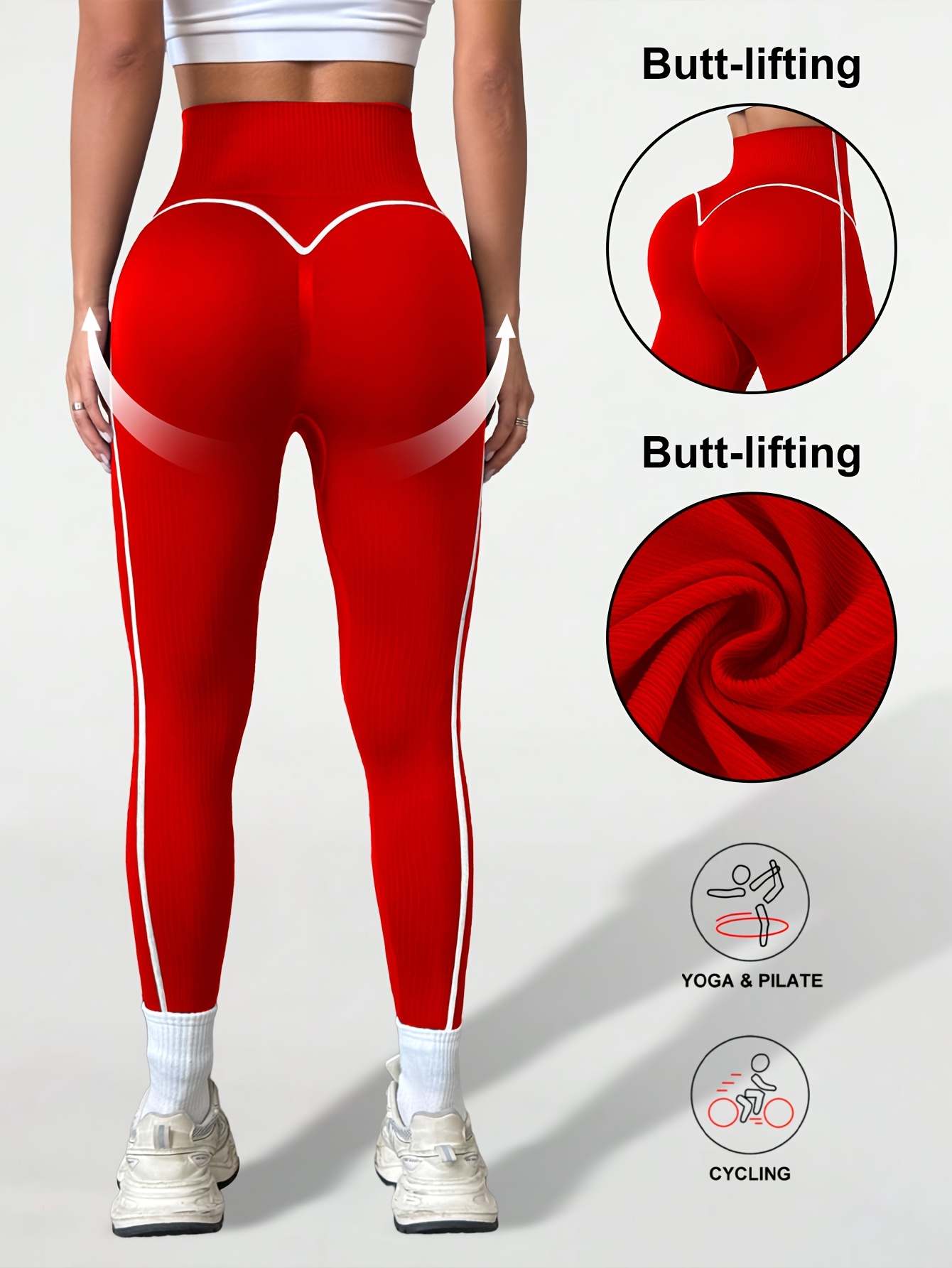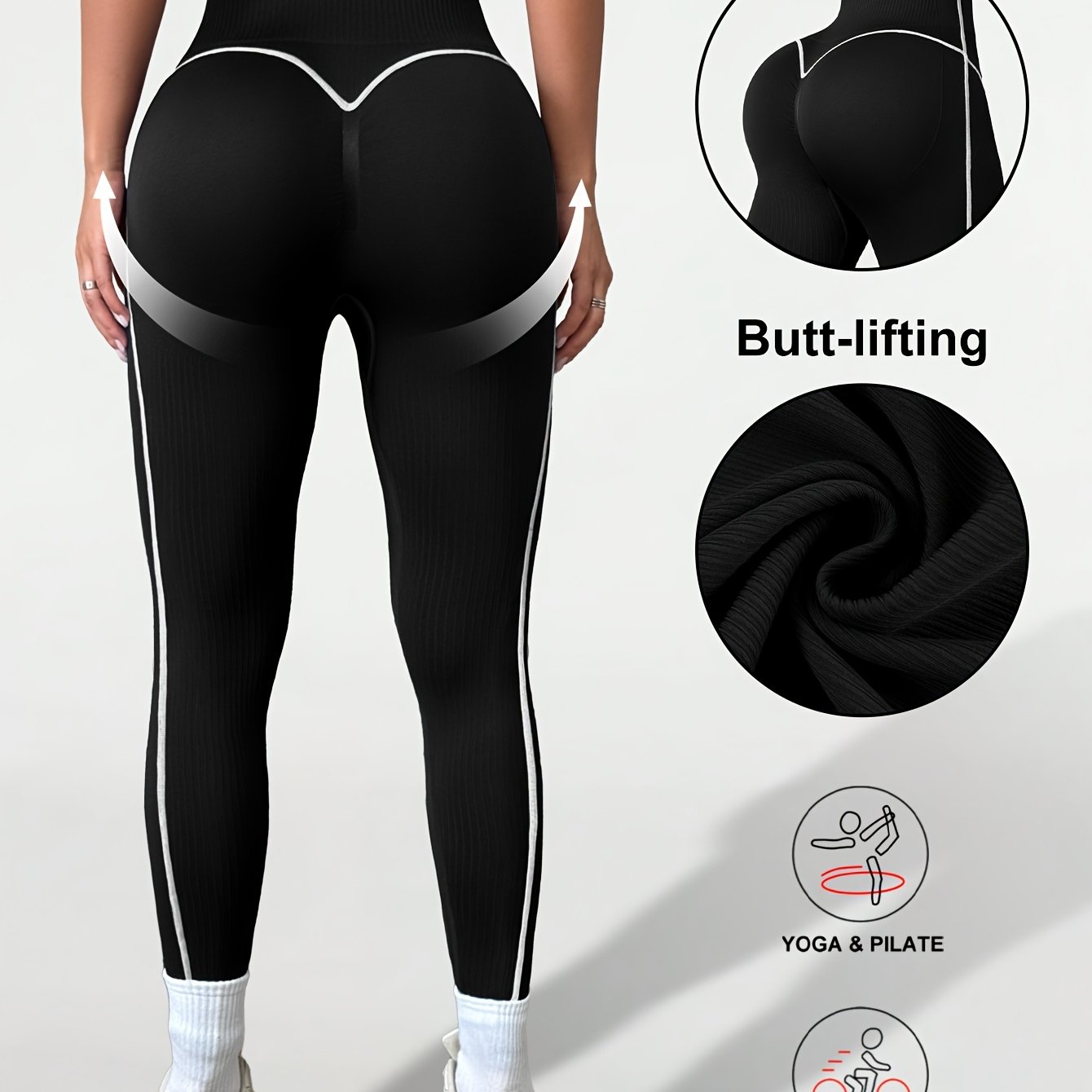 Legging de yoga sans couture taille haute pour femme – Contrôle ventre, effet fessier, élastique et confortable, rayures latérales, pour gym, running et yoga – Tissu extensible