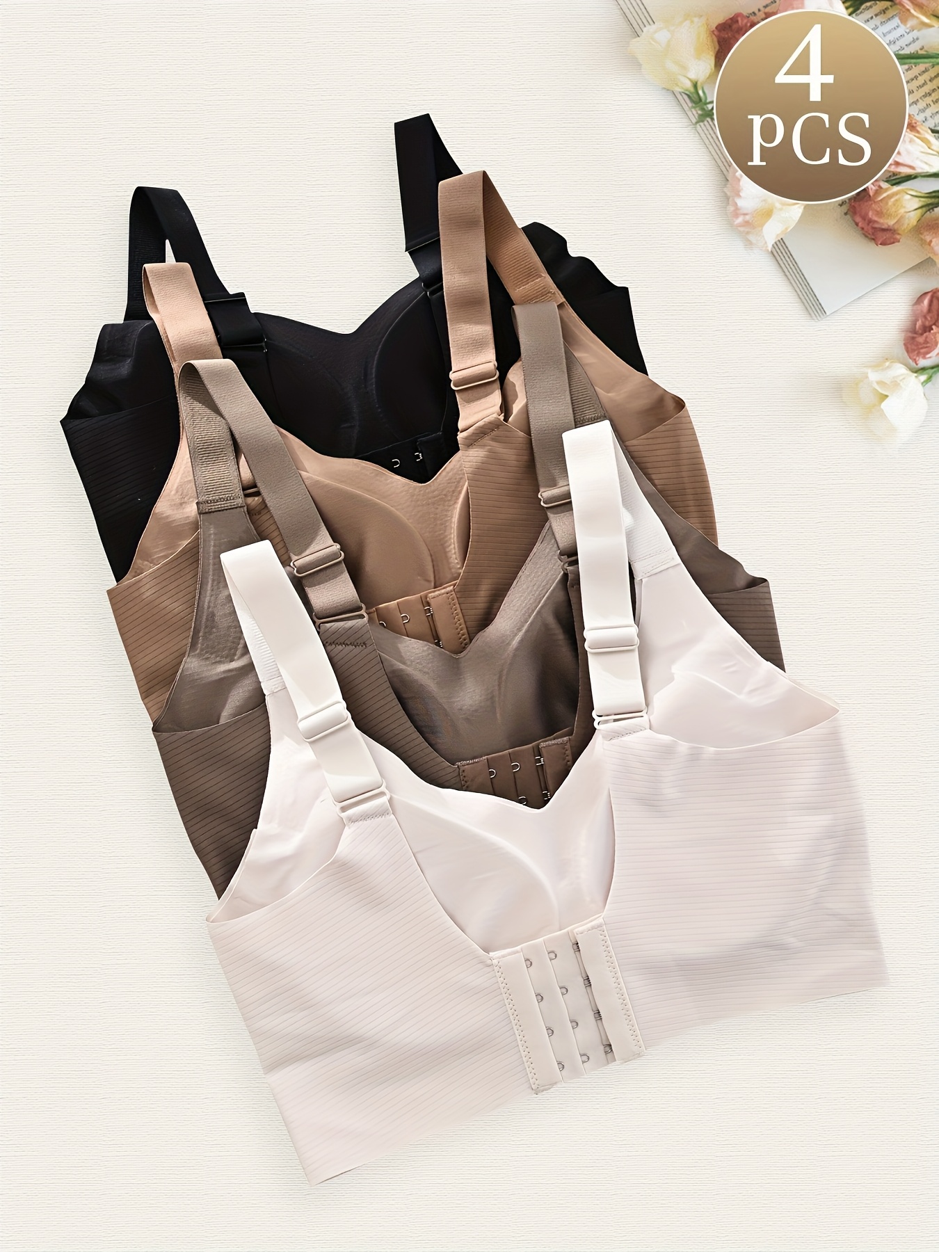 Lot de 4 Soutiens-gorge Femme Sans Couture à Bretelles Larges, Soutien-gorge Intégré, Bretelles Larges Confortables, Soutien Doux Sans Armatures, Sous-vêtements Décontractés