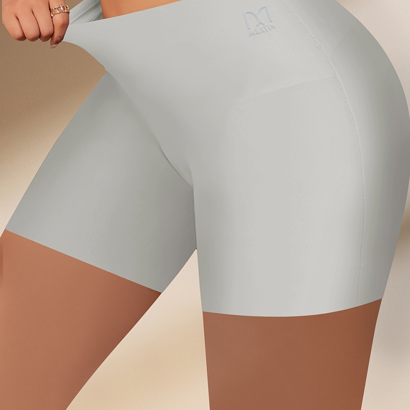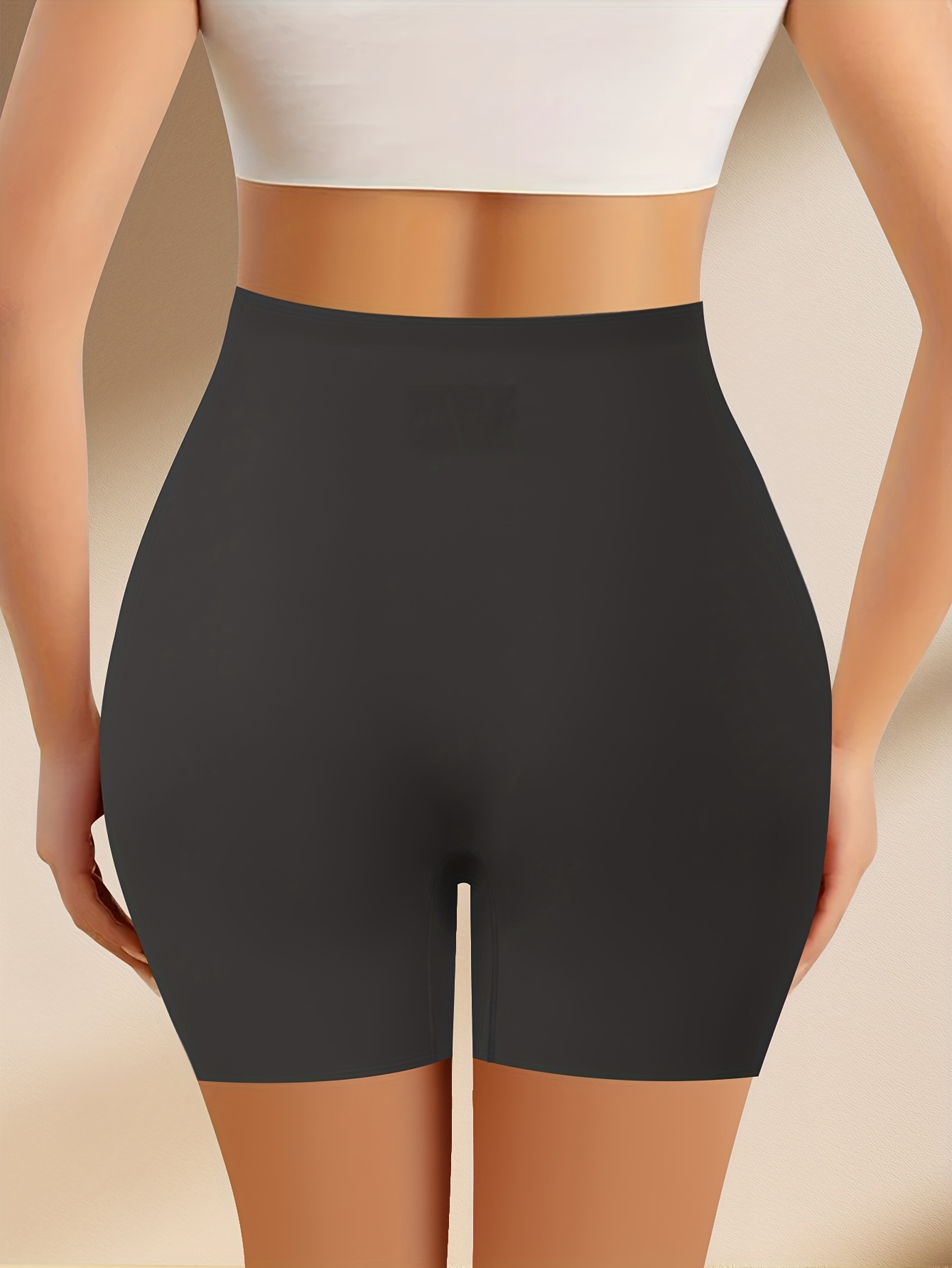 Shorty gainant femme taille haute – Léger maintien, design galbant, 3-en-1 sans culotte, marque QUASTI, couleurs beige clair et sable, respirant pour l'été