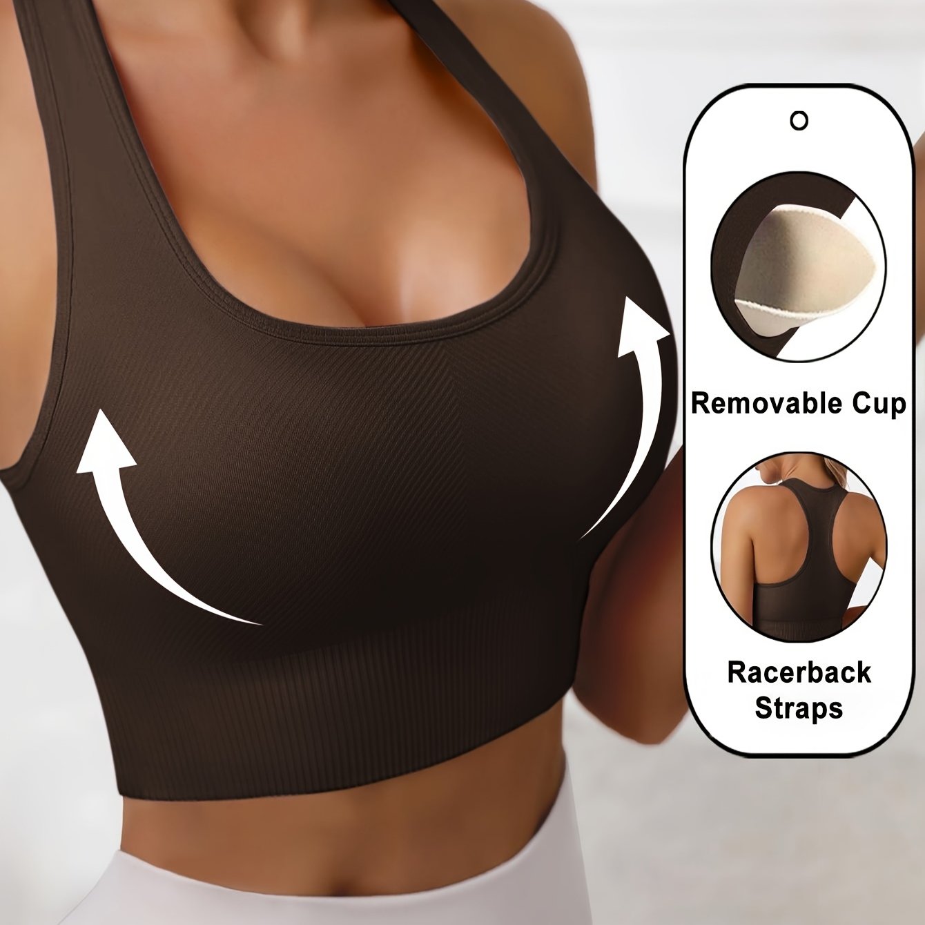 Soutien-gorge de sport en maille côtelée pour femmes – Sans armatures, bretelles croisées, noir uni, polyamide extensible, idéal pour le yoga et le fitness