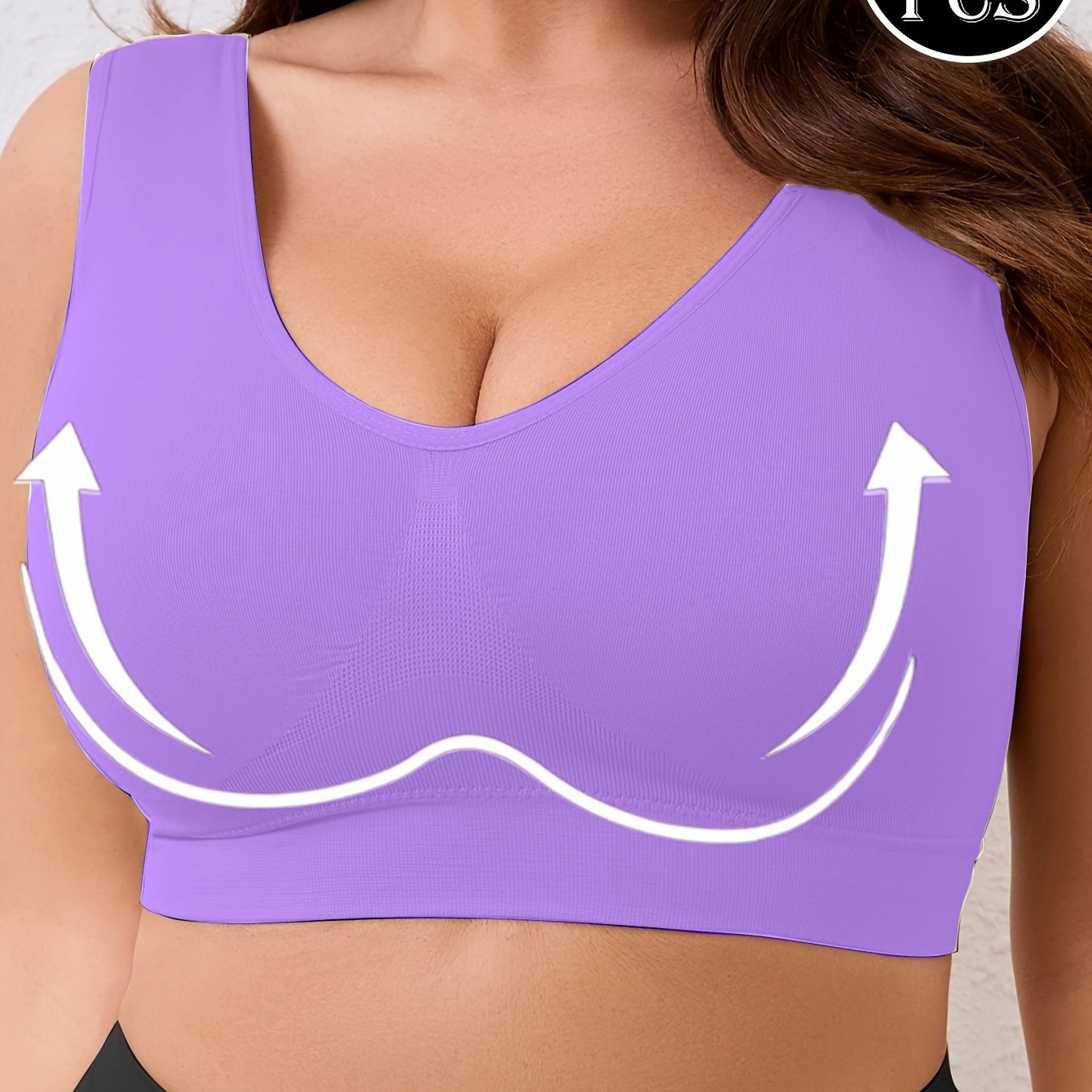 Soutien-gorge de sport sans coutures pour femmes grande taille, débardeur d'athlétisme double couche sans rembourrage à bretelles larges unies, idéal pour running, fitness, yoga et entraînement