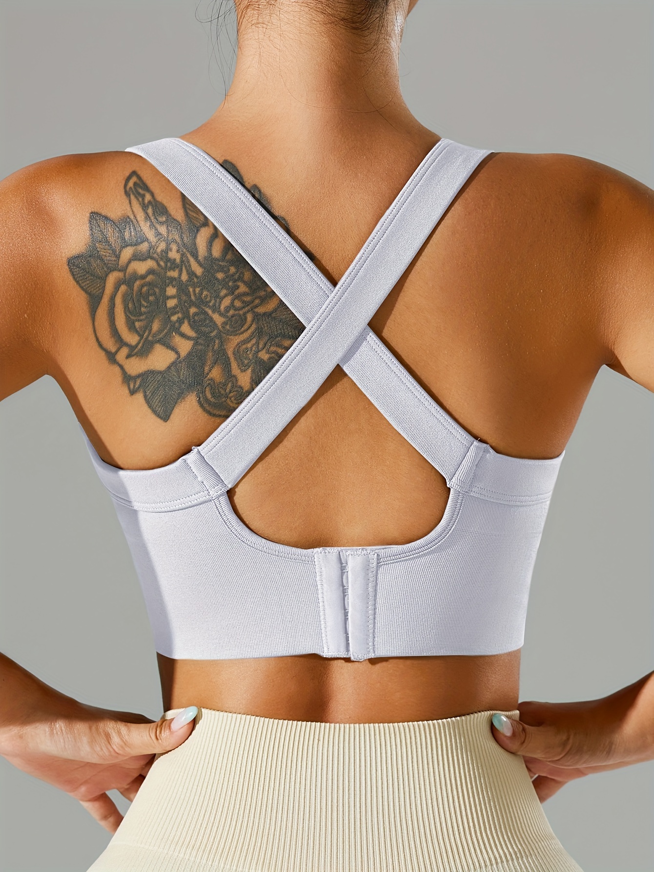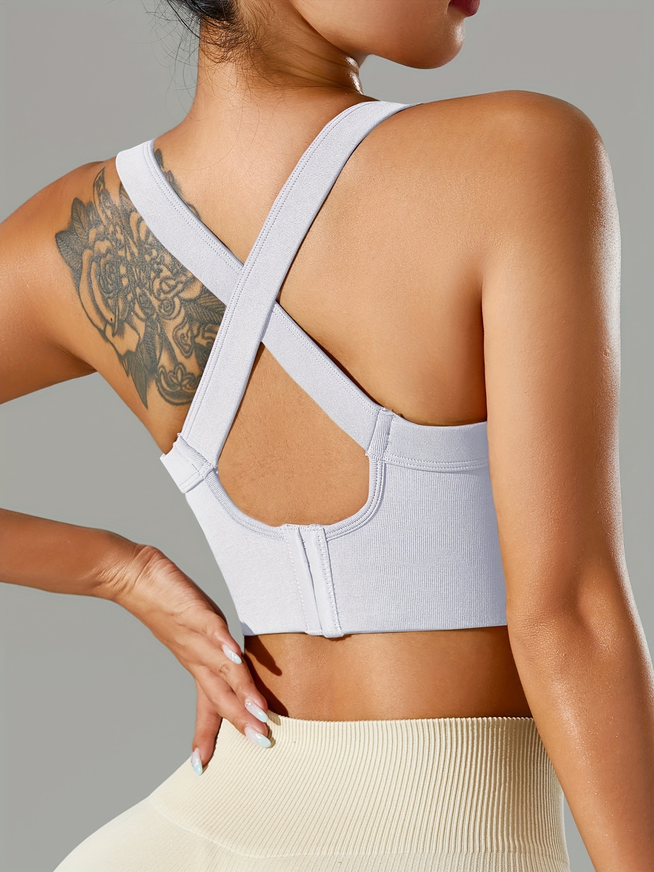 Soutien-gorge de sport uni pour femmes, dos croisé à bretelles fines, top de yoga ajusté, débardeur sportif