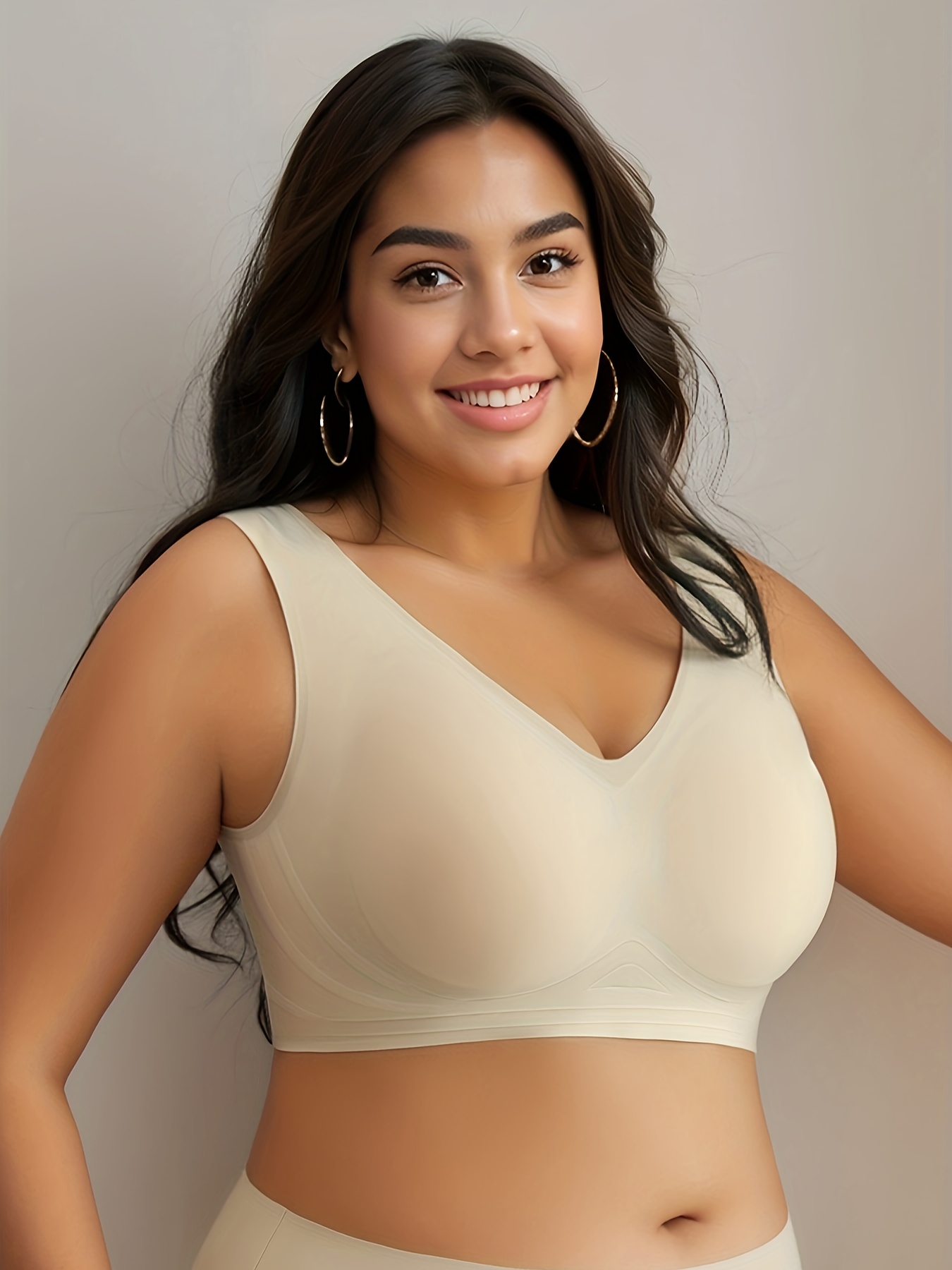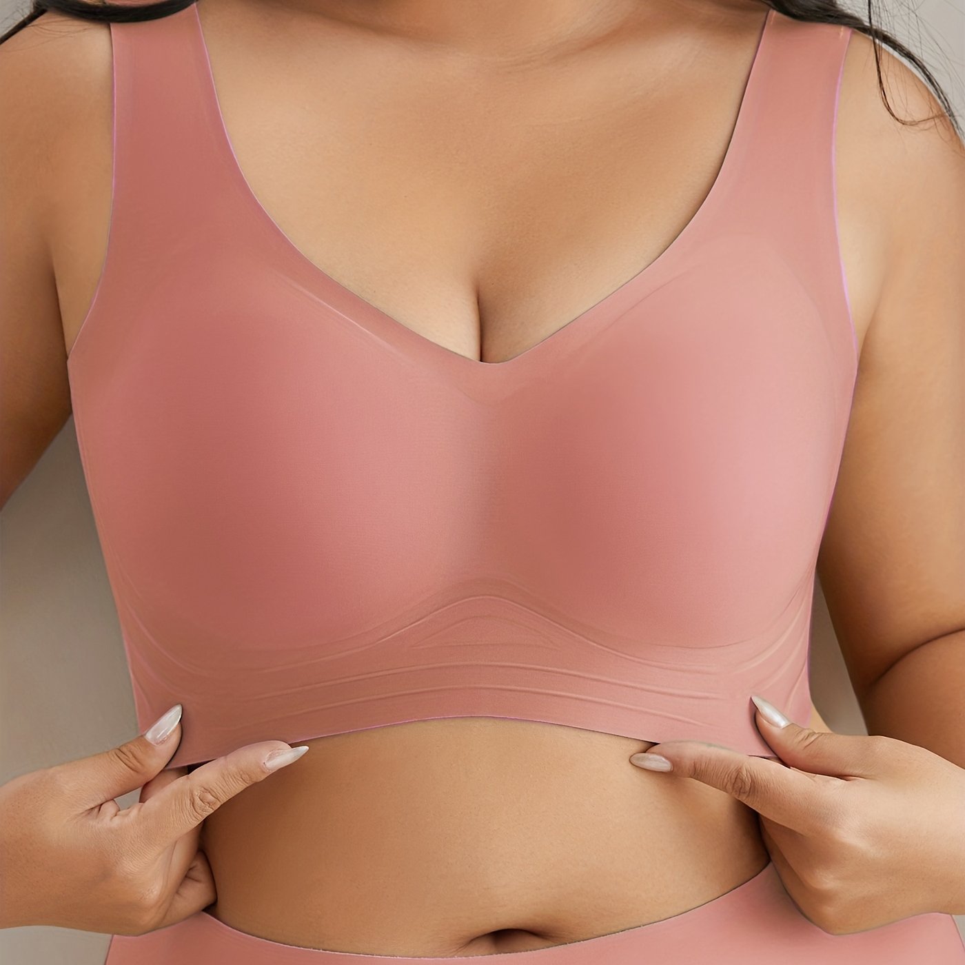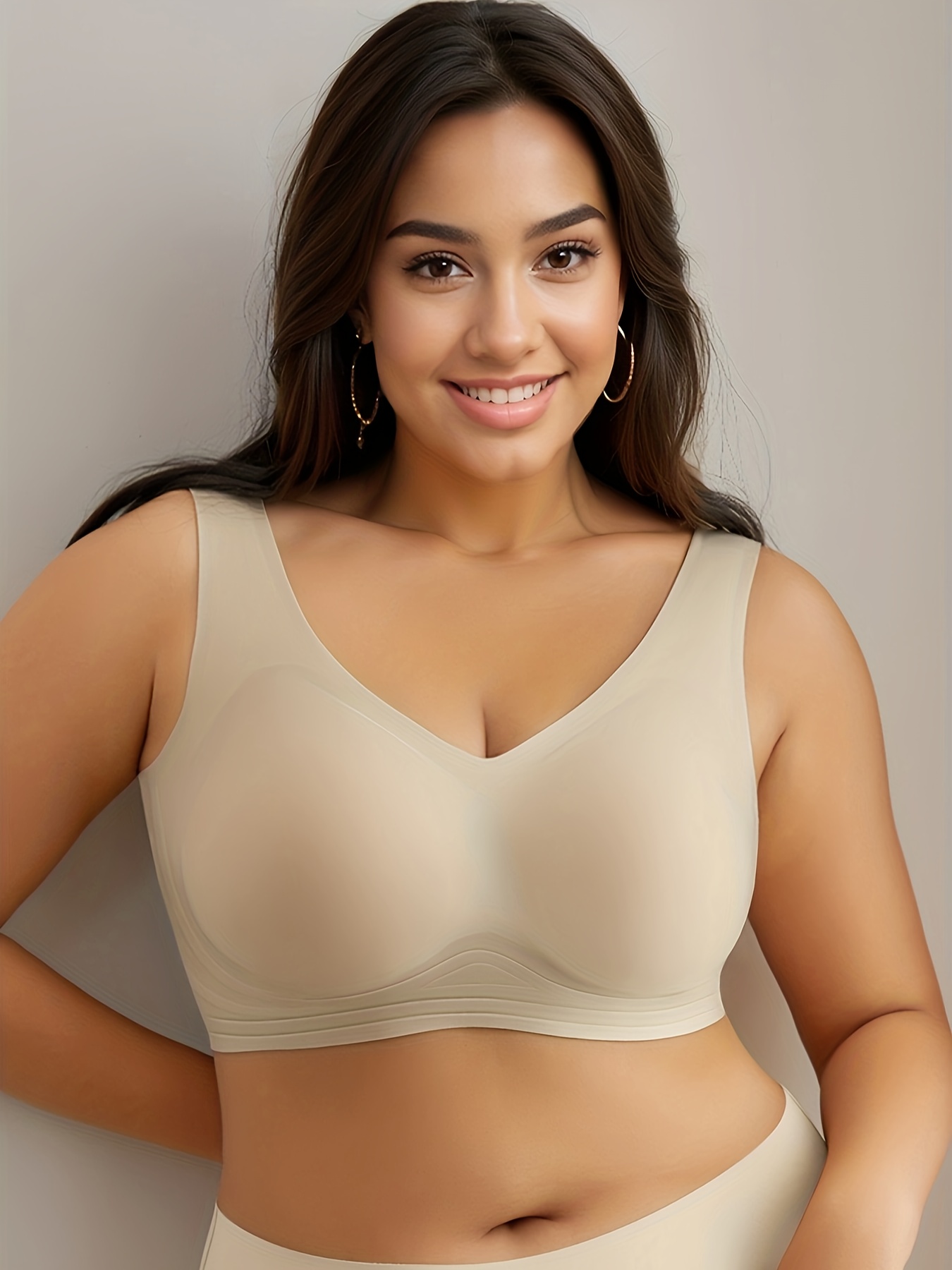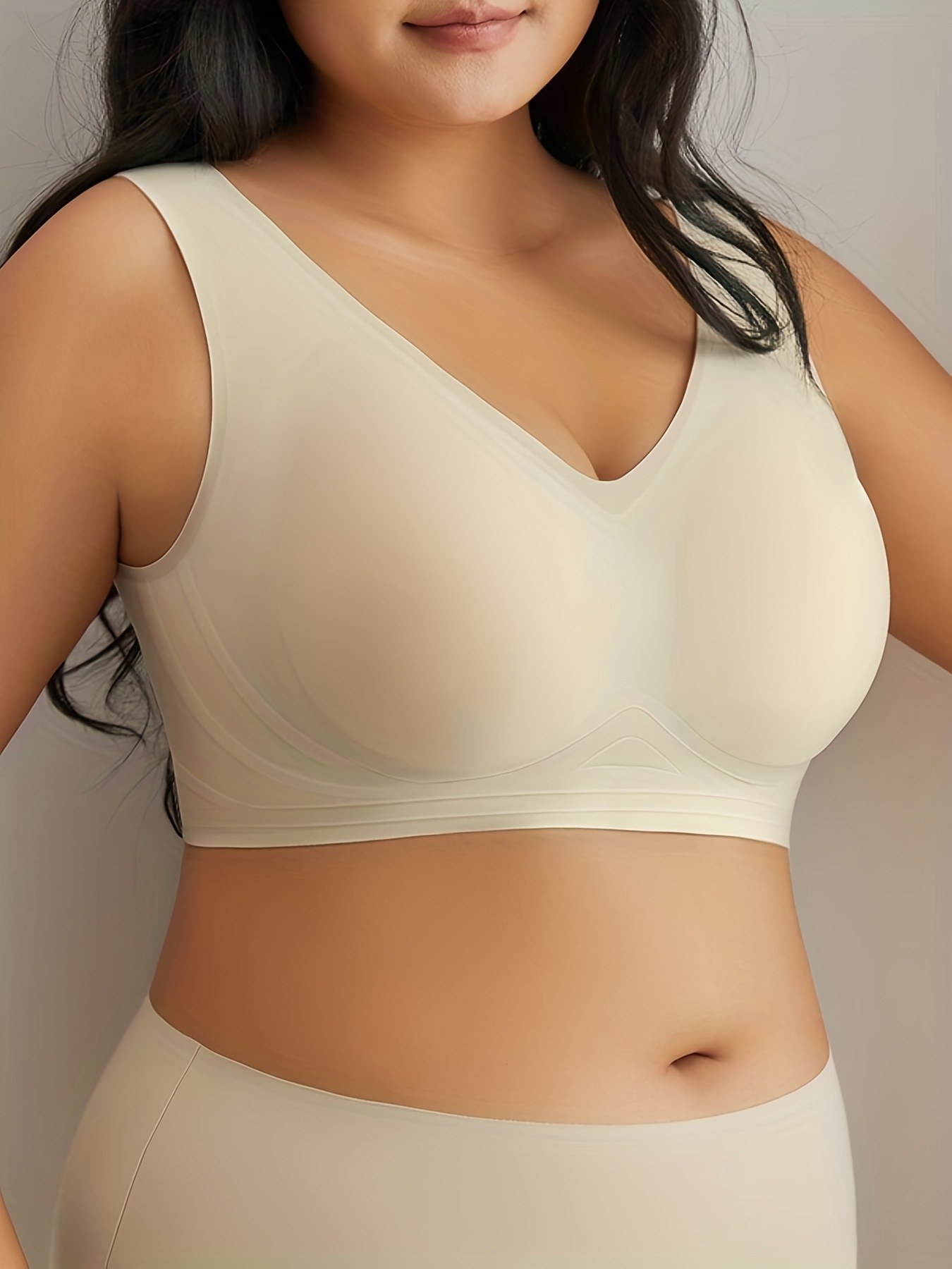 Soutien-gorge sans fil sans coutures grande taille – Élasticité élevée invisible sous les vêtements, coussinets amovibles et sans armatures pour un confort toute la journée, soutien-gorge sportif décontracté couleur unie pour femmes, sous-vêtement confort